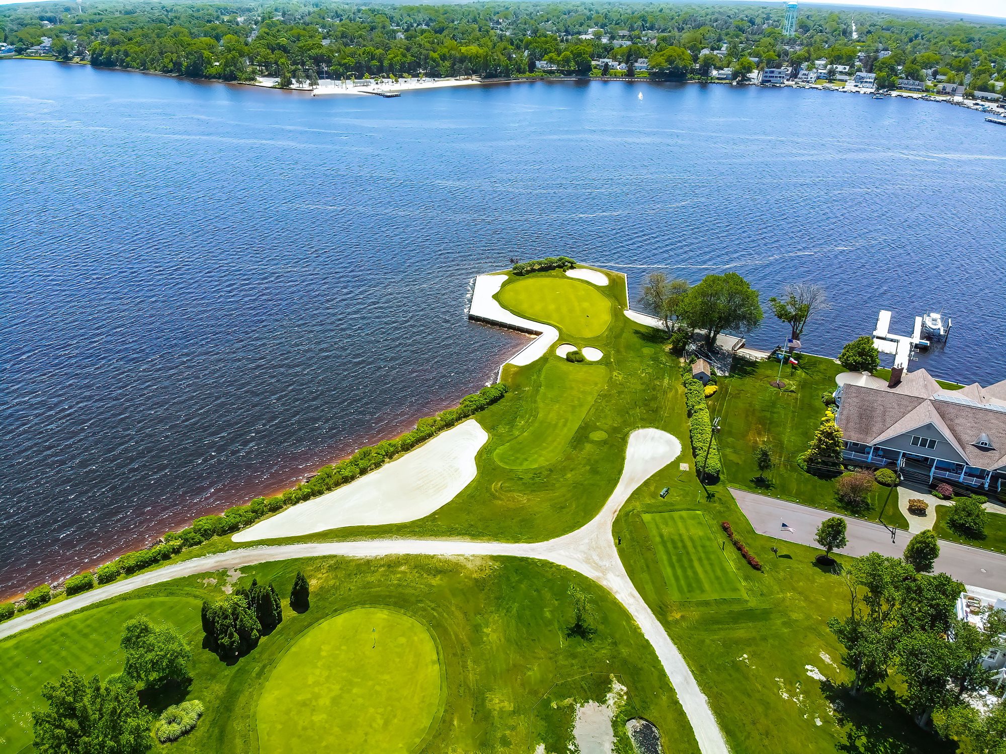 The sixth hole presents an island green par-3 that is one of the finest challenges in golf. The daunting presence of Tom’s River and strategically placed bunkers make it imperative that players select the right club, facing this short par-3 with ever-present fickle winds. Along with the par-4, 450-yard fourth hole with greenside pond, and par-3, 235-yard 11th hole, the course offers the finest test for the best of golfers.